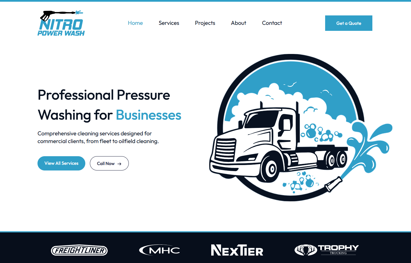 The owner of Nitro Powerwash was operating for quite a while with a website he had built himself using a "premium" online service. After getting 0 leads from his efforts, he reached out to us for a complete overhaul. Without even being on a plan that offers our monthly SEO services, Nitro is now generating multiple leads and sales per week for their services.
